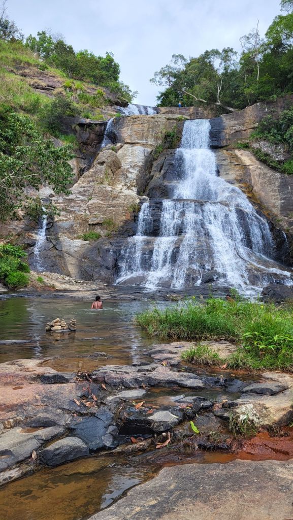 Er hat mich ein wenig an einen Wasserfall im kolumbianischen Dschungel erinnert, mit dem Unterschied, dass die Kolumbianer viel naturverbundener, sich der Schönheit ihres Landes bewusst sind und es entsprechend sauber halten und schützen. In Sri Lanka gibt es da noch erheblichen Aufholbedarf, wenngleich es hier nicht so katastrophal ist wie in Indien.