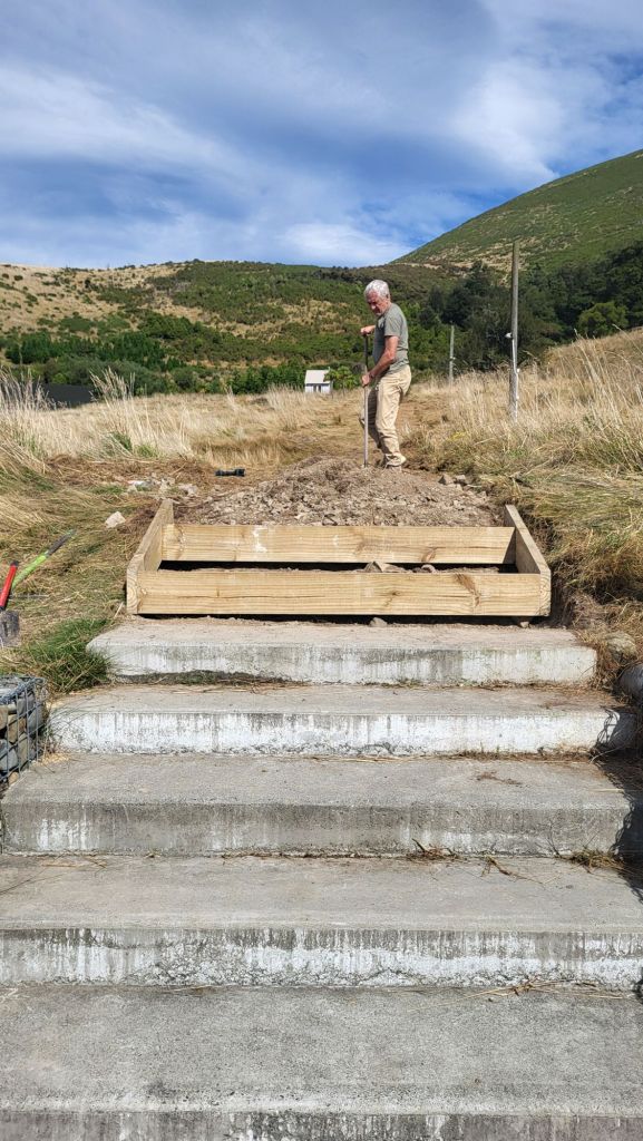 Jedenfalls war ich sehr froh als Chris, der die meiste Zeit seines Lebens in einem buddhistischen Zentrum gewohnt hat und vor fünf Jahren mit Niki, seiner Frau in ein eigenes Haus gezogen ist, vorbeikam, um mich abzuholen. Ich hatte ihm gestern geschrieben, dass ich ihm helfen würde, wenn er heute nach Glentui fährt. Er ist bereits 73 Jahre und als früherer Zimmerer und Rentner aktuell mehr oder weniger die treibende Kraft, der über handwerkliche Fähigkeiten, Zeit und das notwendige Engagement verfügt, um hier das ganze am Laufen zu halten.