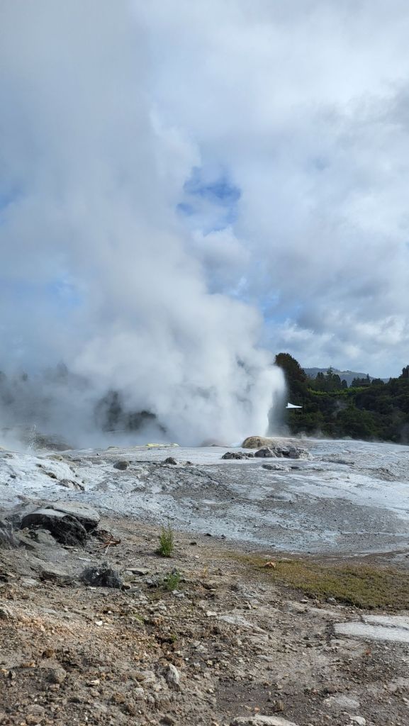 Heute bin ich beim ersten Erwachen sofort aus dem Bett gesprungen, in der Hoffnung, noch vor dem vorhergesagten Regen im Te Puia anzukommen. – Und es hat geklappt! 😃 Bereits eine halbe Stunde vor der Öffnung war ich am Eingang.