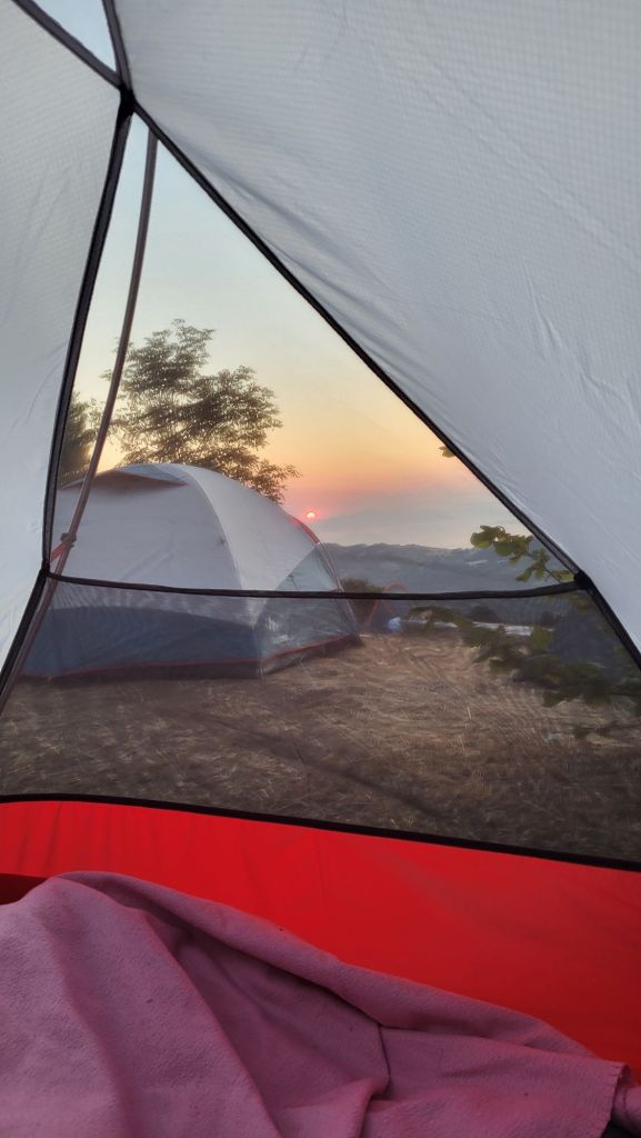 Ja, die nächsten drei Tage ist noch einmal Zelten angesagt. Die Aussicht und die Sonnenaufgänge hier sind traumhaft. Wenn das Wetter so warm und trocken bleibt und mein Zelt keinen Regenschutz benötigt, kann ich nachts direkt in den Sternenhimmel blicken.