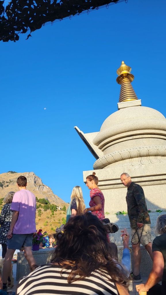 bei unserer Ankunft in KBLAussicht aus meinem Zelt..links 8 kleine Stupas, rechts oben große Kalachakra Stupa8 Stupas, die folgende Ereignisse Buddhas verkörpern: Geburt, Erleuchtung, erste Belehrungen, Wunder, Besuch seiner Mutter im Götterbereich, Wiedervereinigung der Sangha, Lebensverlängerung, Eintritt ins Nirvana Die Kalachakra Stupa feiert heute ihren 14. Geburtstag und verkörpert die höchsten und letzten tantrischen Belehrungen Buddhas12 Stunden Umrundung am Geburtstag der Stupa.