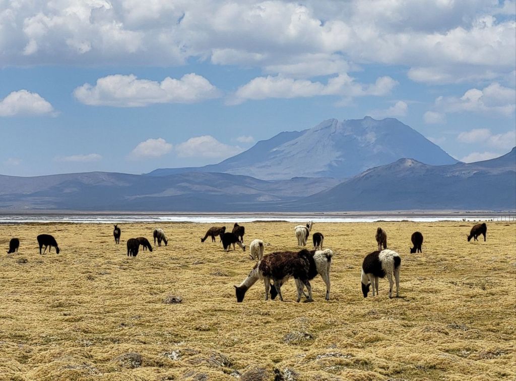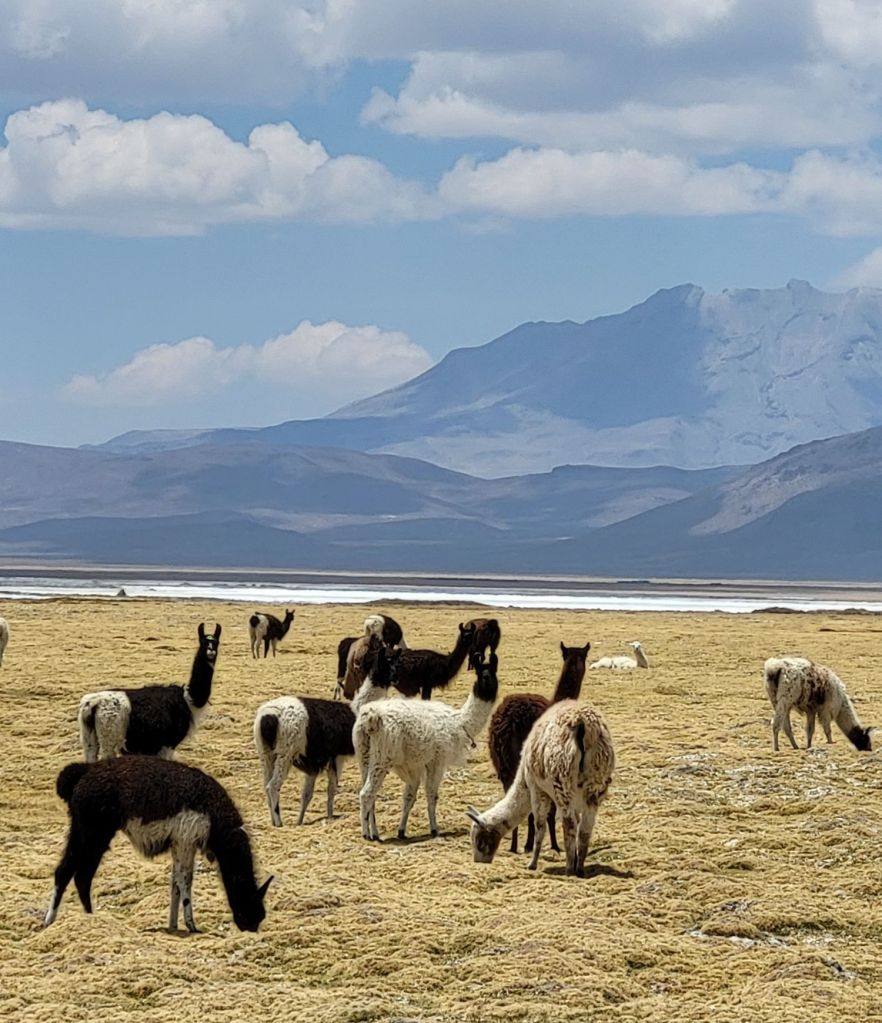 Meine Sozia hat gefilmt…Wenn der See mit Wasser gefüllt ist, bietet er eine spektakuläre Spiegelfläche für die Vulkane ringsumLamas ganz nah 😍