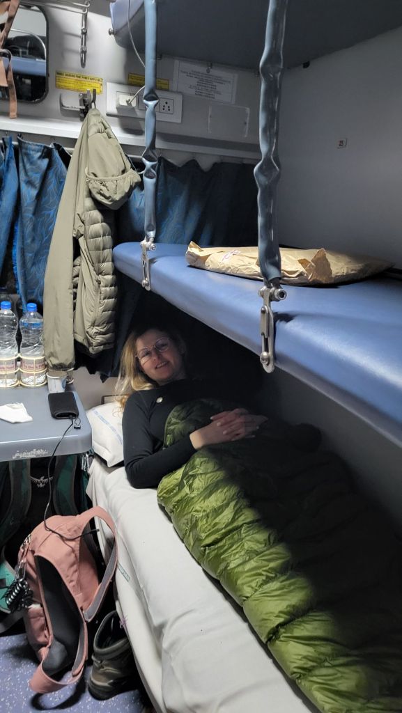 Eigentlich wäre ich gerne wieder mit den russischen Dharma Freunden auf der gerade stattfindenden 9000 Kilometer langen Wintertour von Moskau bis Wladiwostok, mit der Trabssibirischen Eisenbahn. Aufgrund der schwierigen politischen Verhältnisse und der damit verbundenen Sanktionen, welche nur bestimmte Flugverbindungen zulässt, wurde die Tour in die entgegengesetzte Richtung umgestellt, so dass es für mich von Indien aus, jetzt noch komplizierter, ein riesiges Hin- und Herfliegen bedeutet hätte, wenn ich danach in Australien mit der 365 Tour weitermachen möchte. Deshalb habe ich entschieden auf die „Wintertour“ zu verzichten und erst einmal in Indien zu bleiben. Als kleine Entschädigung habe ich mir eine 800 Kilometer und 13 Stunden lange Zugfahrt von Agra nach Bodhgaya im „Sleeper“, dem indischen Nachtzug genehmigt, wo ich mich jetzt gleich zur Ruhe legen werde. – Auch ein kleines Abenteuer!