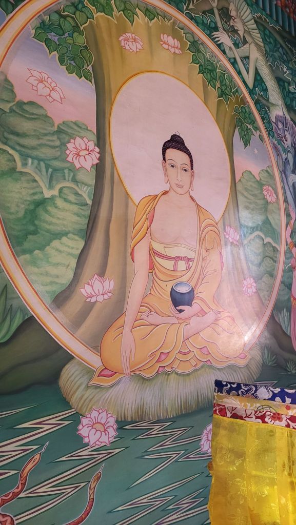 Am Abend durfte ich dann noch an einer Mahakala Puja im Karma Tempel, wo ich untergebracht bin, teilnehmen. Ein sehr kraftvolles Ritual! Der Mahakala Raum hier ist sehr besonders, mit einer riesigen Mahakala Statue und unglaublichen, edlen Wandmalereien. Leider durfte man auch hier nicht fotografieren, nur die vordere große, der Öffentlichkeit zugängliche Gompa, mit ebenfalls wunderschönen Wandmalereien vom Leben Buddhas.