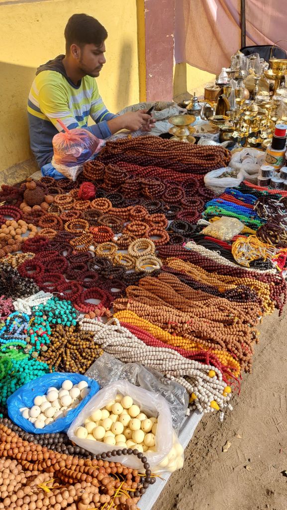 Neben den vielen buddhistischen Tempeln gibt es auch einen sehr lebhaften Straßenhandel in Bodhgaya, überwiegend mit buddhistischem Meditationsbedarf und Devotionalien. Kleidung, Schmuck, Schals, Obst und Gemüse kommen vor Haushaltswaren und Plastikspielzeug an zweiter Stelle.