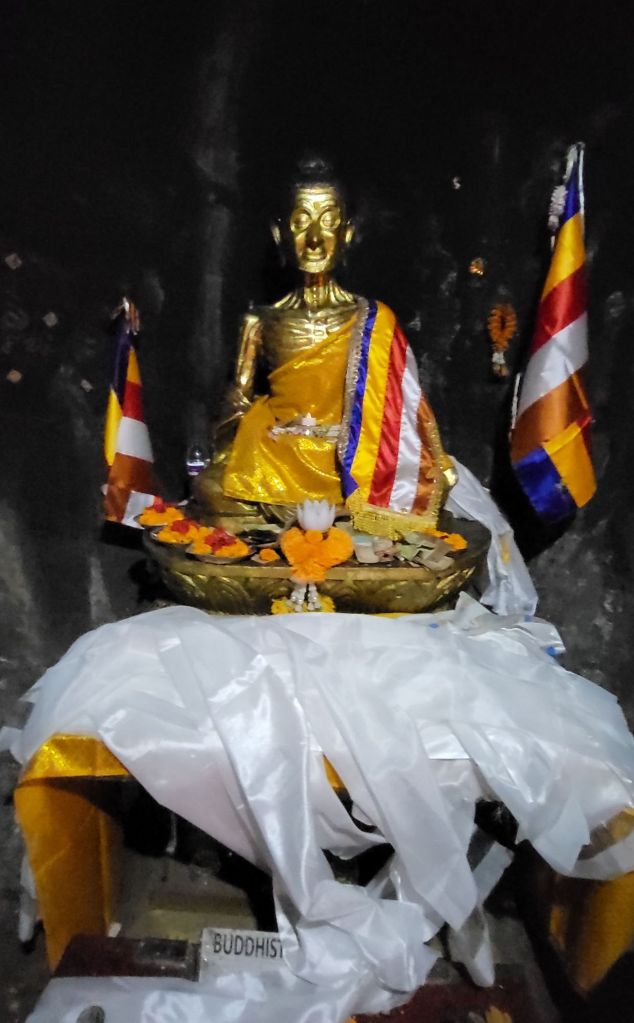 Sandeep ist jetzt schon der Dritte Inder, der mich angesprochen hat und mir dann nach einer kurzen Unterhaltung ein Foto von Lama Ole gezeigt hat. Es ist echt beeindruckend zu sehen, welchen Einfluss er selbst hier bei den Menschen ausübt und sie begeistert. Alle drei haben mir von sich aus angeboten, dass sie mich mit ihren Motorrädern zur ca. 12 km entfernten Mahakala Höhle bringen würden. In dieser Höhle hat Buddha sechs Jahre lang meditiert, bevor er schließlich nach Bodhgaya kam.