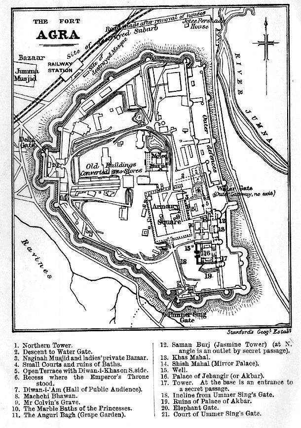Das Rote Fort in der nordindischen Stadt Agra ist eine Festungs– und Palastanlage aus der Epoche der Mogulkaiser und diente im 16. und 17. Jahrhundert mit Unterbrechungen als Residenz der Moguln. Das Rote Fort wurde 1983 in das UNESCO-Weltkulturerbe aufgenommen. Ein Teil des Geländes wird heute militärisch genutzt und ist der Öffentlichkeit nicht zugänglich.Suchbild: Wo ist das Taj Mahal?