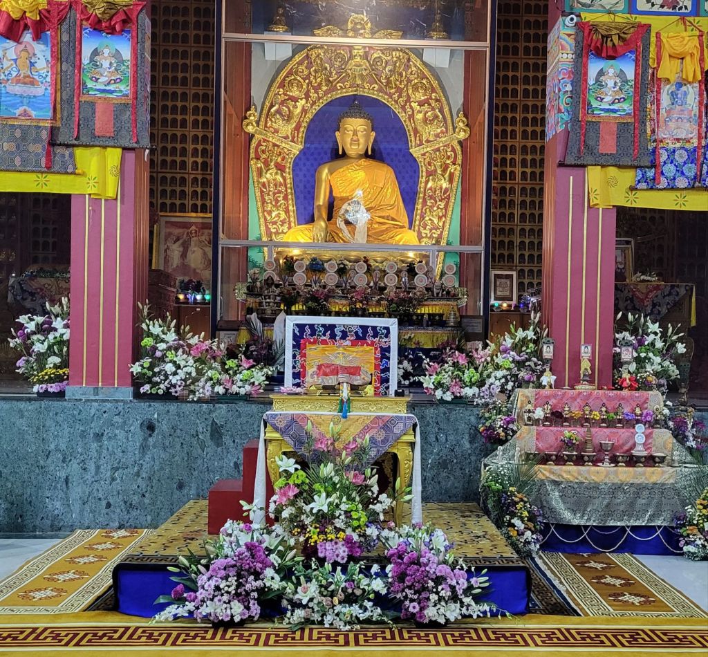 Der 17. Karmapa ist das Oberhaupt der Karma Kagyü Linie und gibt hier neben anderen Lamas und Rimpoches täglich buddhistische Belehrungen und wir meditieren zusammen.
