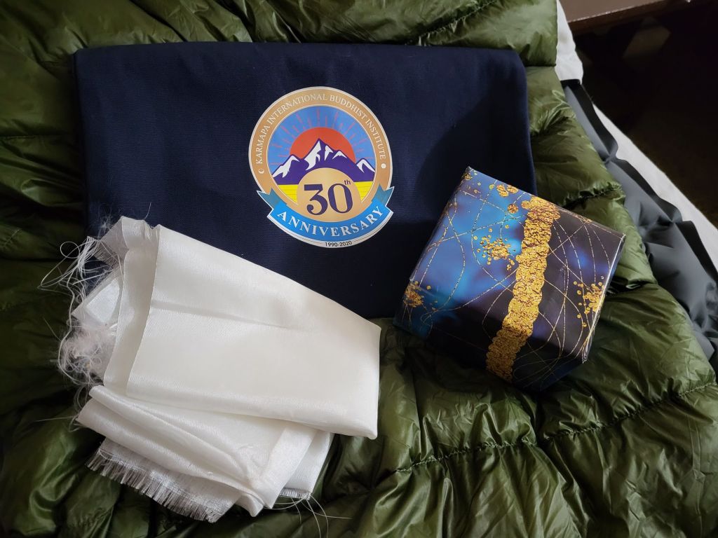 Anschließend haben noch einige freiwillige Helfer, die namentlich vorgelesen wurden, ein Geschenk von Karmapa bekommen. 🎁